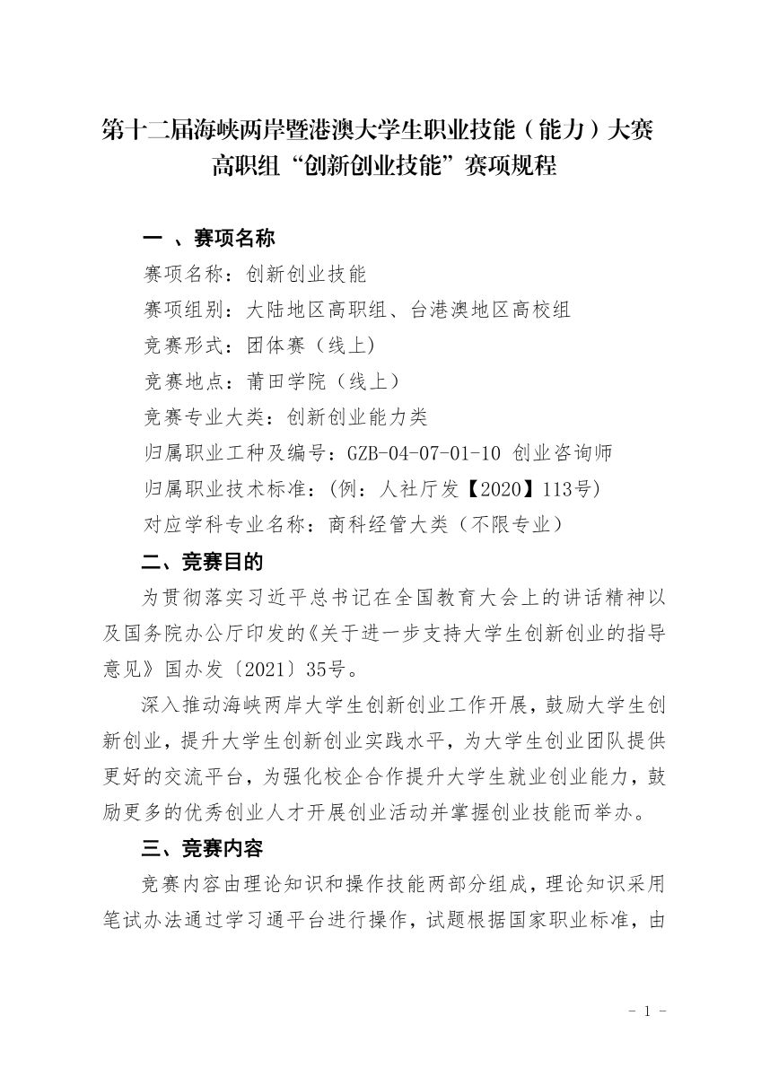 第十二届海峡两岸暨港澳大学生职业技能(能力)大赛 高职组“创新创业技能”赛项规程