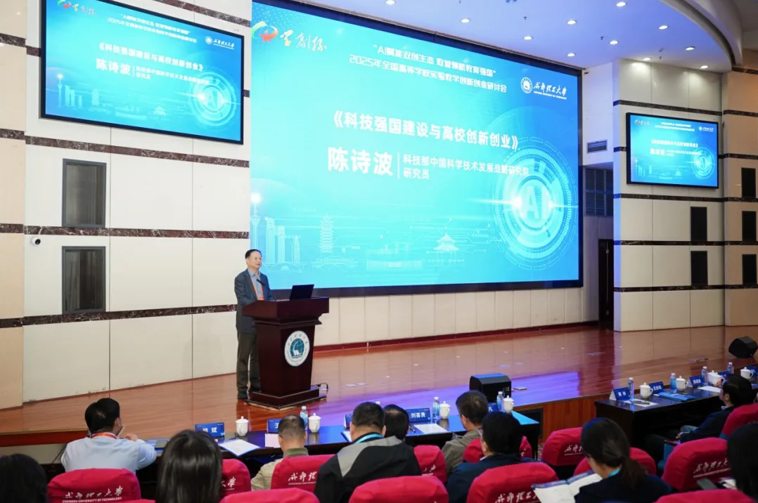 科技部中国科学技术发展战略研究院陈诗波研究员围绕《科技强国建设与高校创新创业》,探讨了科技强国战略的重要性与高校的核心作用,指出高校创新创业现存问题,并提出强化产学研协同等融合发展建议。