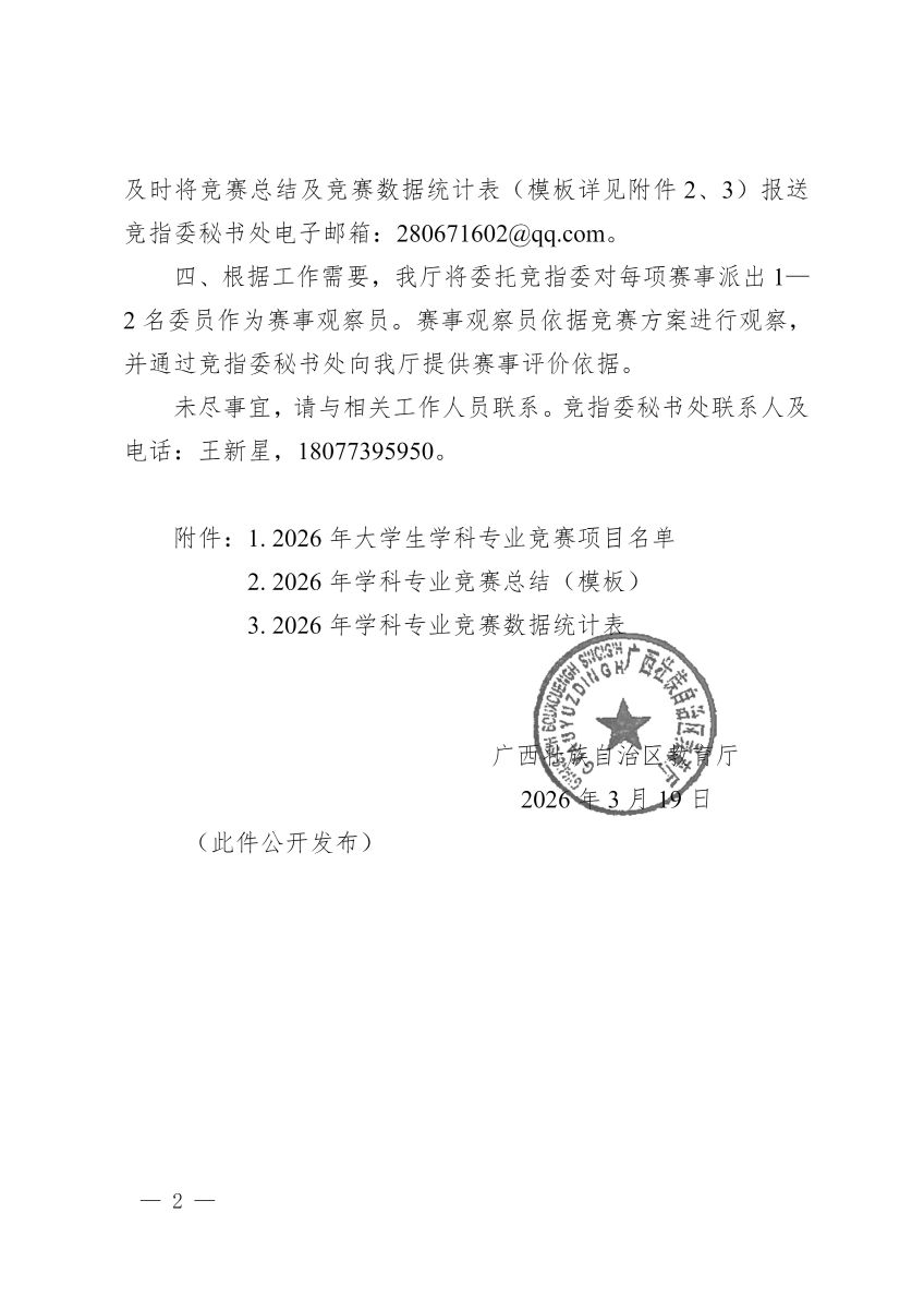 近日,广西壮族自治区教育厅发布《自治区教育厅关于公布 2026 年广西高校大学生学科专业竞赛立项项目的通知》,其中,2026 年“学创杯”全国大学生创业综合模拟大赛广西赛区选拔赛(本科组、职教组)列入竞赛项目!