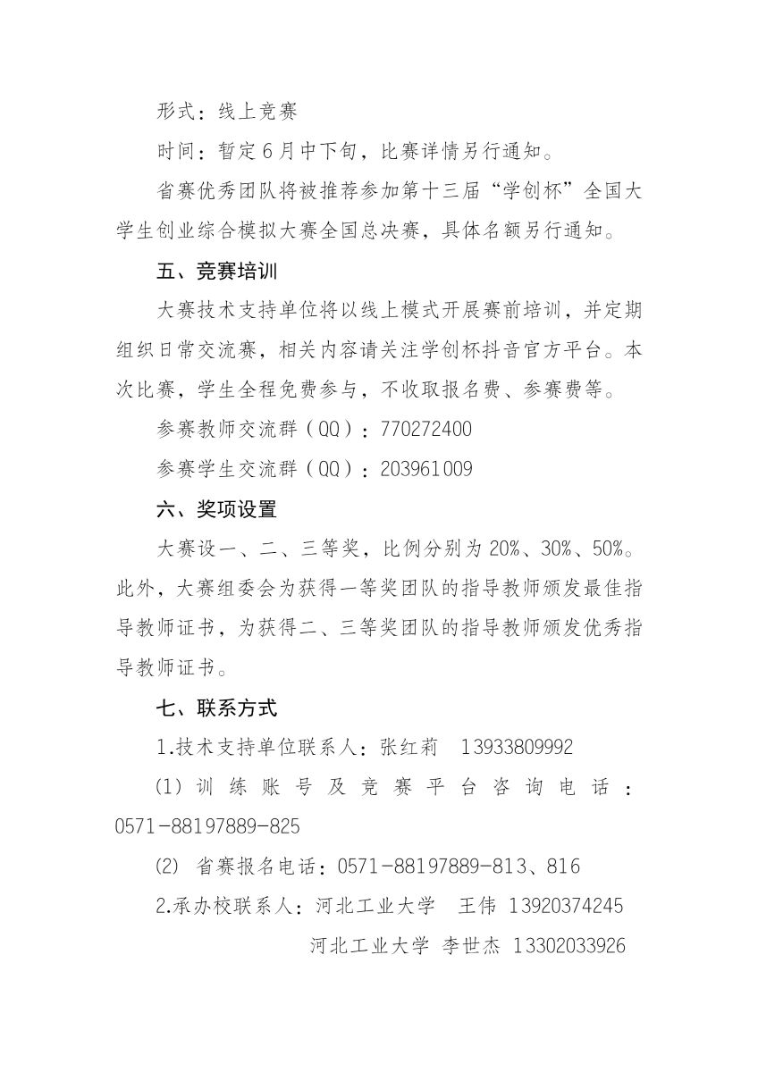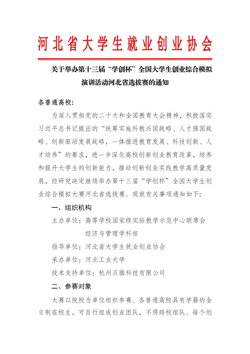 关于举办第十三届“学创杯”全国大学生创业综合模拟演训活动河北省选拔赛的通知