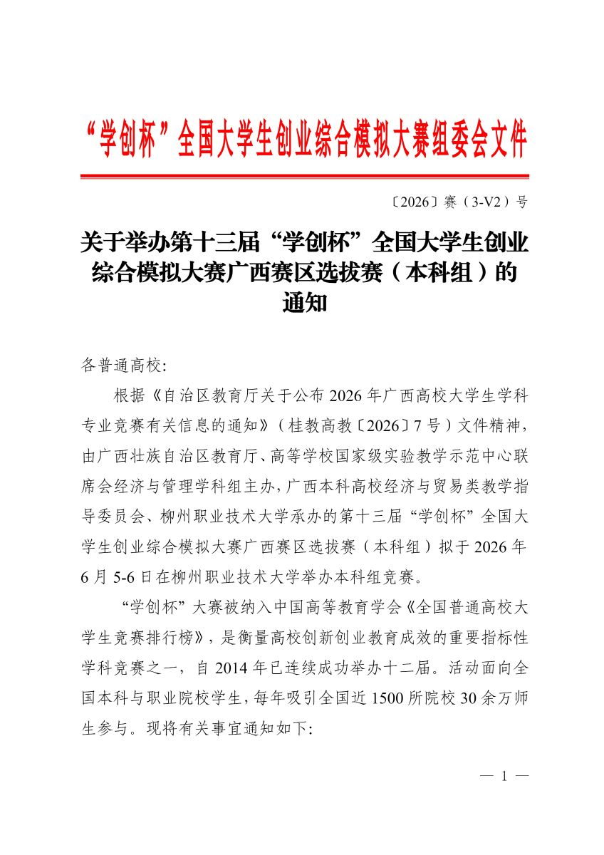 关于举办第十三届“学创杯”全国大学生创业综合模拟大赛广西赛区选拔赛(本科组)的通知